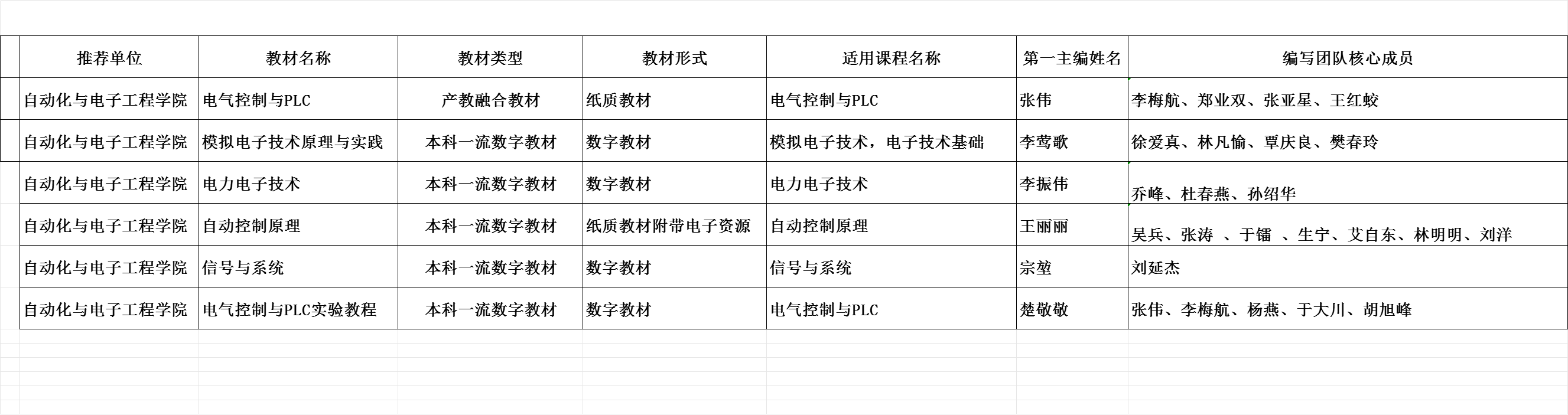 根据《普通高等学校教材管理办法》(教材(2019)3号)文件要求,经中德科技学院党委和自动化与电子工程学院党委对编写人员资格审查,确定李莺歌等以下教师政治立场坚定,拥护中国共产党领导,认同中国特色社会主义,坚定“四个自信”,自觉践行社会主义核心价值观,具有正确的世界观、人生观、价值观,坚持正确的国家观、民族观、历史观、文化观、宗教观,没有违背党的理论和路线方针政策的言行,符合教材编写人员条件。现将编写人员情况公示如下(详情见附件):