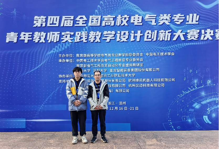 2025年12月16日-18日,第四届全国高校电气类青年教师实践教学设计创新大赛决赛在浙江温州举行,自动化学院于大川、李梅航老师参加并展现出扎实的专业基础与突出的创新能力,在“新能源光伏数字化课程开发”赛项中荣获全国二等奖。