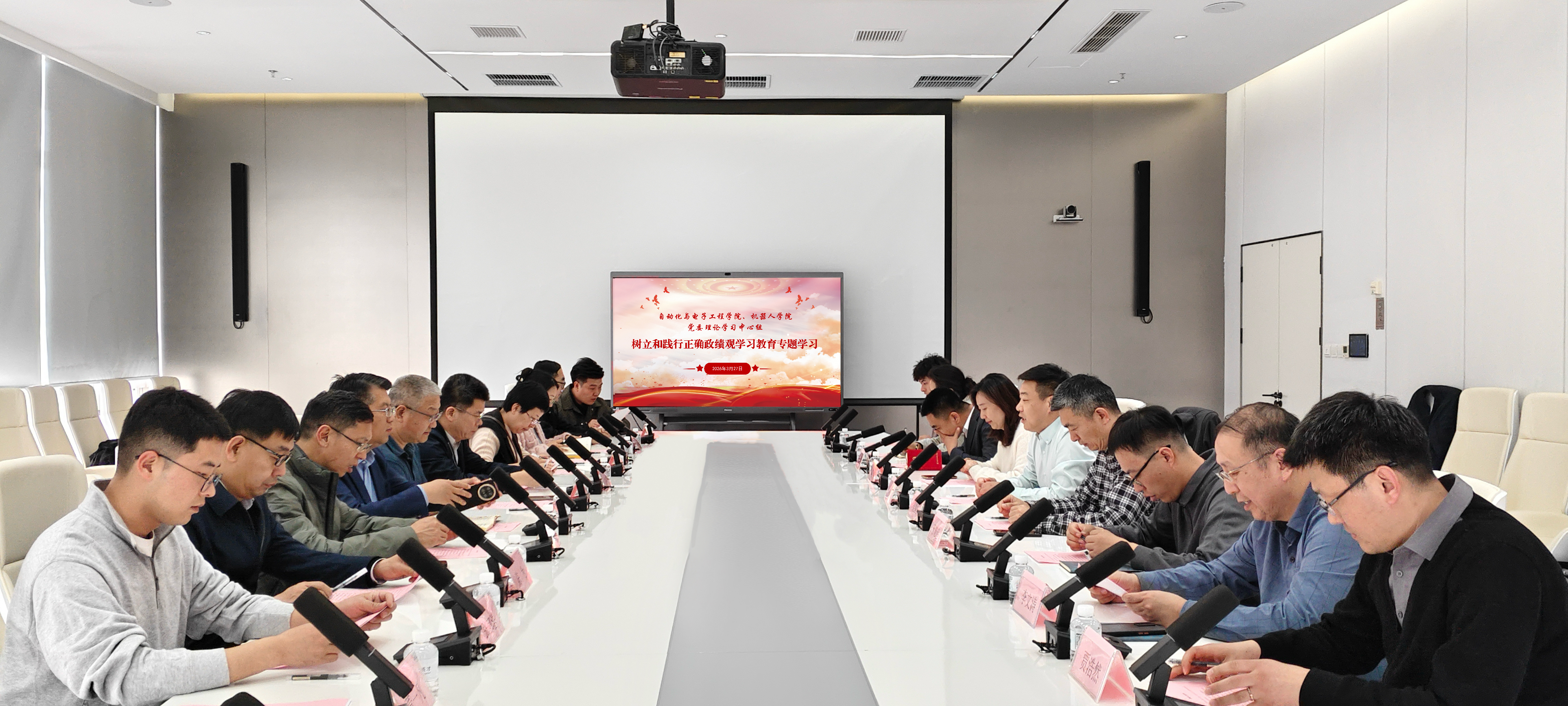 3月27日下午,自动化学院、机器人学院党委理论学习中心组赴青岛产业人才匹配赋能中心开展树立和践行正确政绩观学习教育专题学习。学院党委理论学习中心组成员、学院党支部书记代表参加活动,以理论学习与实地研学相结合的方式,深化对正确政绩观的理解,凝聚推动学院高质量发展的实干合力。