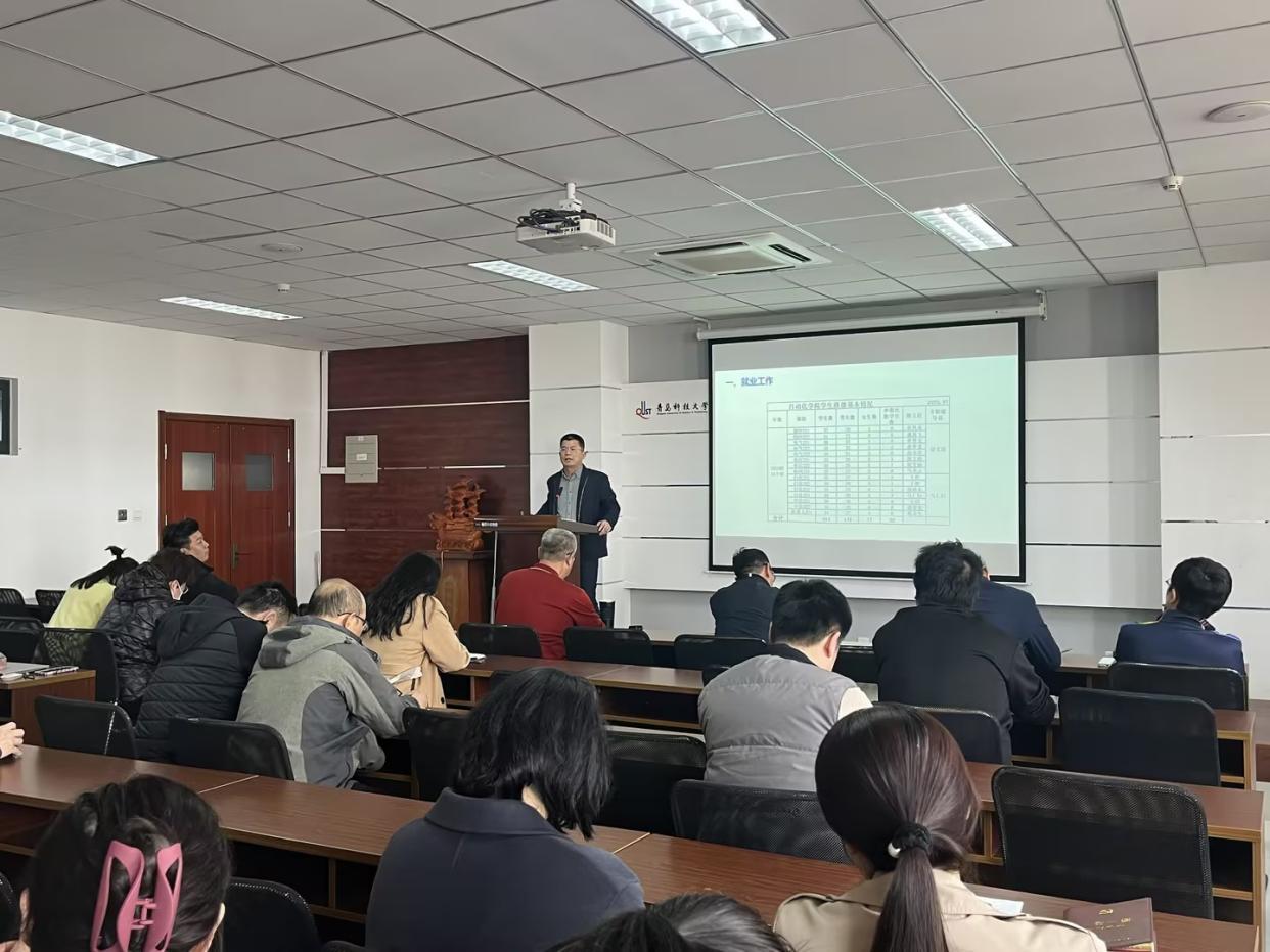 随后,学院党委副书记兼副院长刘名森围绕就业工作、学风建设、学生安全、宿舍建设四大板块作详细部署与通报。在就业工作方面,通报了2026 届毕业生各专业去向落实率。在学风建设方面,通报了学院考试违纪、学业预警人数持续下降的良好态势。最后,通报了宿舍安全卫生检查情况,筑牢校园安全防线。