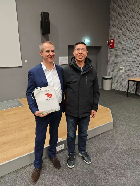 研学尾声,梅斯国立工程师学院为全体研学学员举办结课仪式,院长 Pierre Chevrier 亲自为学员颁发结业证书,双方共同总结交流成果,梳理校校、校企合作切入点,标志着我院与梅斯国立工程师学院的人才培养合作迈出实质性步伐。随后,研学团赴法国 IESEG 学院开展学术研讨,围绕数字化转型、供应链管理与自动化技术的融合应用及商业转化路径等前沿议题深入交流,进一步拓展了我院工程专业与商科融合发展的合作领域。返程前,研学团召开成果整合会,系统汇总课程研习、产业实践、高校对接等全部内容,提炼自动化专业教育教学与学术实践的核心收获,形成研学成果初步总结。