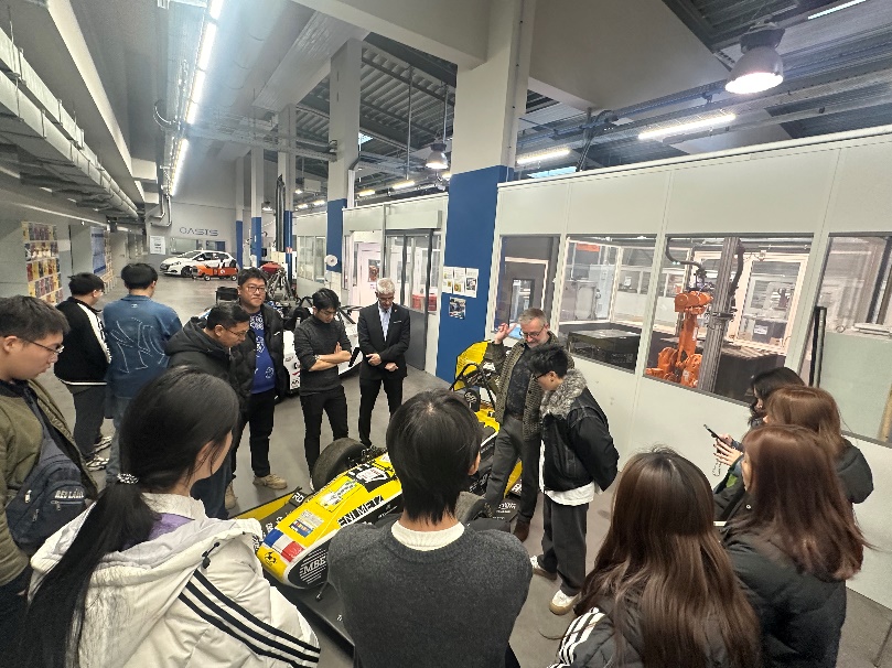 产业实践是本次研学的重要环节,研学团先后前往梅斯国立工程师学院产学研合作基地 —— 圣戈班集团、采埃孚集团开展实地调研。在圣戈班集团,师生深入生产一线,调研生产全流程与质量管控体系,直观感受法国企业的工程技术应用与质量管理模式;在采埃孚集团智能制造车间及研发中心,研学团与企业技术人员围绕自动化技术研发与应用开展专业学术交流,学习借鉴法国汽车行业智能制造领域的先进技术与实践经验,精准把握工程教育与产业实践融合的核心要点,有效提升了师生的专业实践能力与产业认知水平。