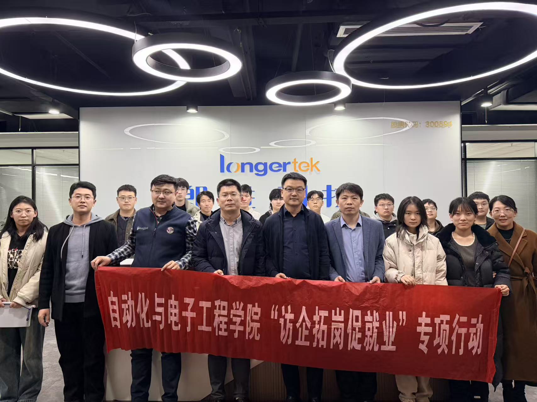 11月25日下午,自动化学院党委书记郭永、党委副书记兼副院长刘名森、团委副书记兼学工办副主任张郁浩及2026届毕业生辅导员徐文丽、马仁轩一行,带领部分毕业生代表,赴山东朗进科技股份有限公司开展访企拓岗暨校企合作交流活动。山东朗进科技董事、轮值CEO,学院2008届自动化专业校友王绅宇及主要负责人热情接待了学院来访人员。