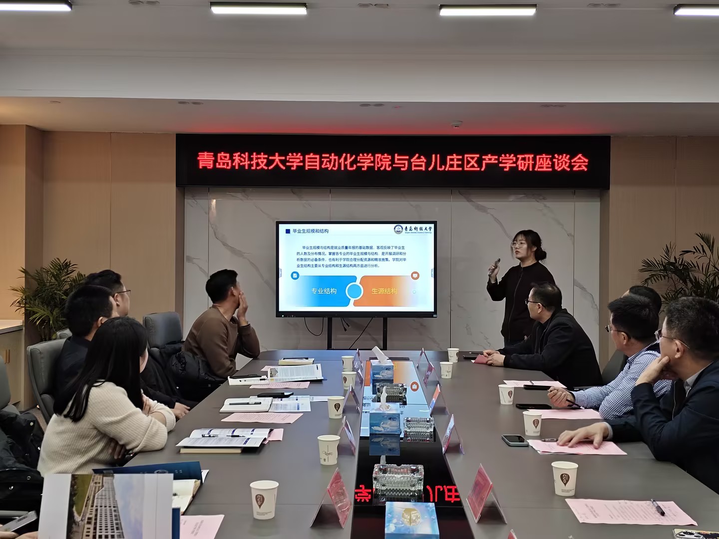 座谈会上,刘名森介绍学院学科特色、人才培养以及近年来毕业生就业情况,表示学院高度重视就业工作,希望以此次座谈为契机,与枣庄企业建立常态化合作机制,在人才联合培养、技术攻关、实习就业等方面深度合作,实现校地共赢。辅导员赵赪赪、徐文丽分别介绍了往届毕业生就业情况、2026届毕业生当前就业现状与枣庄籍毕业生情况。
